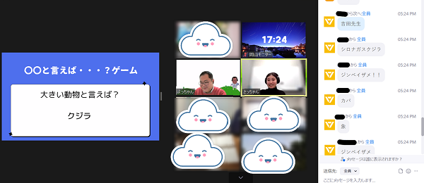 昨日行われた第2回目の講座《英語》は、自分のあだ名orみんなに呼ばれたい名前で参加し、「○○と言えば…?ゲーム」からスタート。