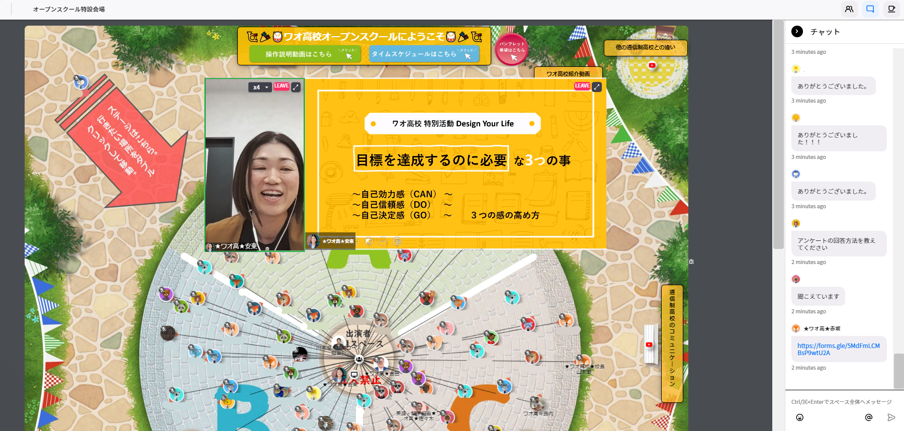 他にも、現役ワオ高生たちがワオ高校について語る「ワタシの学び in ワオ高」やオプションコース体験授業など、大いに盛り上がったオープンスクールでした!