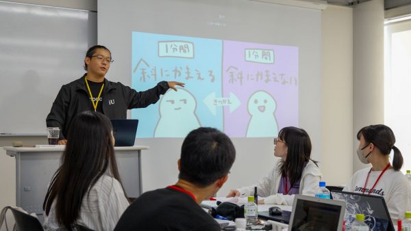 iUの講義は、ビジネスと同じく少人数の対話型で進んでいきます。一人ひとりの気づきや考えをアウトプットすることで話が広がっていく様子を垣間見ることができました。